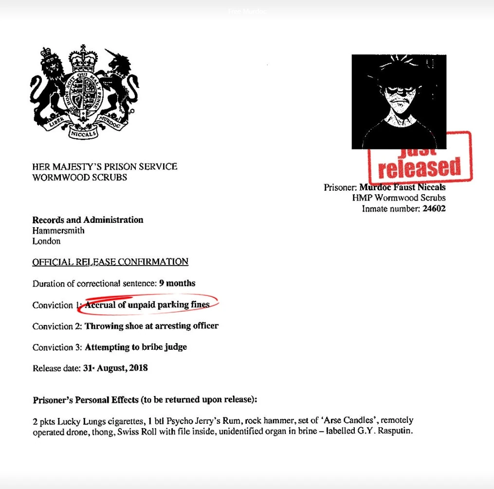 - Тюремный номер Мёрдока #24602 (пятая фаза, кампания "Free Murdoc") скорее всего является отсылкой к роману Виктора Гюго "Отверженные", в котором у главного героя был номер #24601.