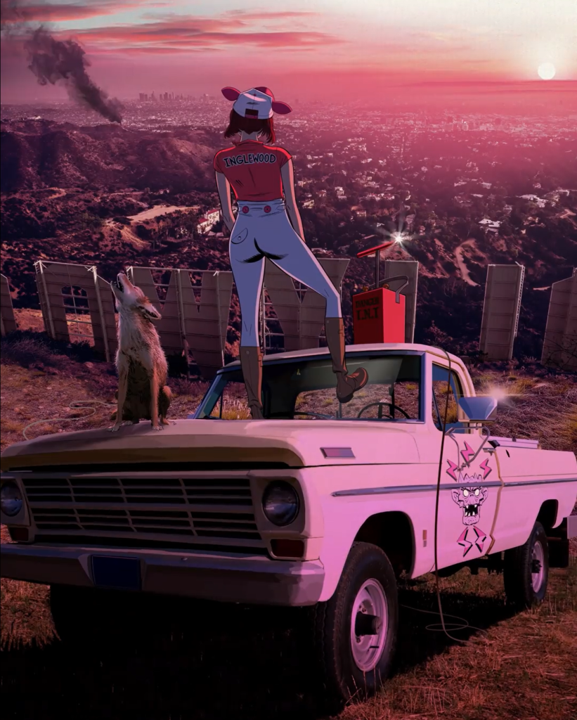 Нудл у знака Голливуда