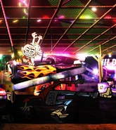 - The bumper car shown in the video can be seen in Noodle's garage in the Gorillaz iOS/Android app.