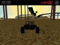 On the game, you can control the band's Geep through an open area resembling the ambient from the 19-2000 Music Video, but without any of the characters shown there. You can drive on the road above the ground, following the same route shown in the video, or on the ground, in a dirt terrain with some scenery objects, such as ramps, skate parks and a church (which you can simply pass directly through). On the Geep, there are also low-poly models of each one of the band members: Murdoc (who is driving it), 2-D, Noodle and Russel. The song 19-2000 plays in a loop on the background of the game. If the player happens to get stuck on their roof and cannot move the game will automatically right the Geep back onto it's wheels. They can also reset to the starting position by clicking the "restart game" button in the top right corner of the screen.