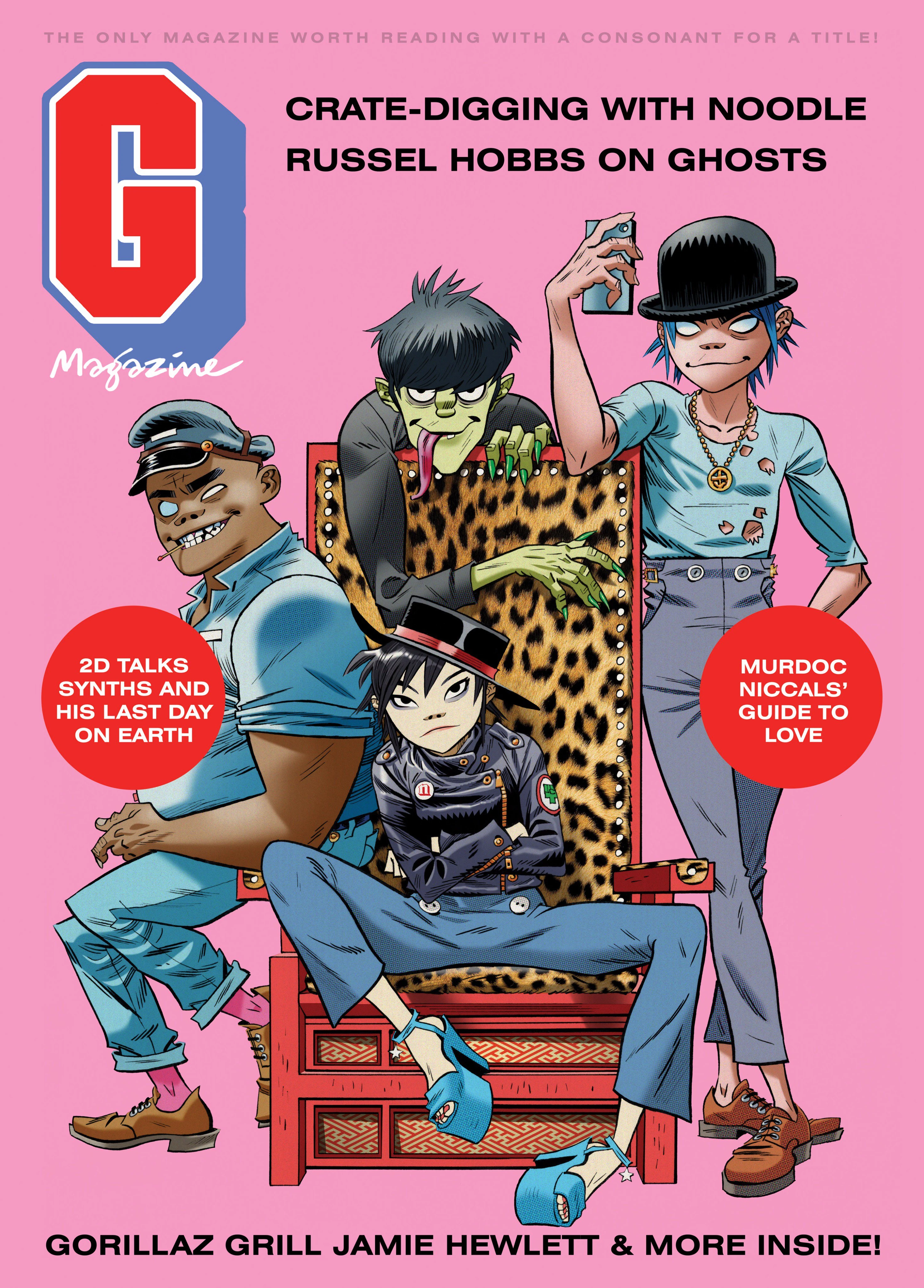 G Magazine is a single issue magazine about Gorillaz that was published on December 1st 2017. As the first ever magazine by Gorillaz, G Magazine’s contents consisted of interviews with the band, playlists, and artwork, with each copy including a sticker sheet, a poster, and a patch. G Magazine is the first printed publication by Gorillaz since the 2010 Escape To Plastic Beach World Tour Guide. It was succeeded in 2020 by the Gorillaz book Gorillaz Almanac 2020, a similar publication that is much grander and more expansive.
