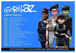 Humanz Tour was a live concert tour by Gorillaz . The tour spanned from 8th July 2017 to 30th March 2018. The tour was in support of their fifth album, Humanz . This marked the first tour after the band's hiatus.